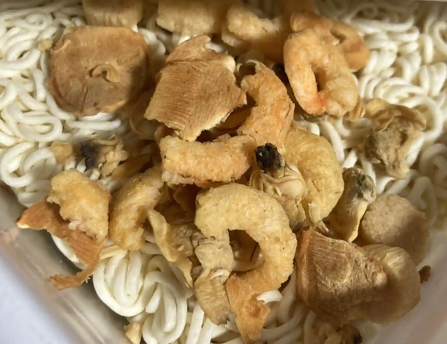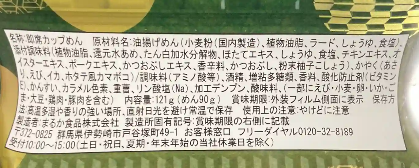 かやくの内訳は「あさり / えび / いか / ホタテ風かまぼこ」です。