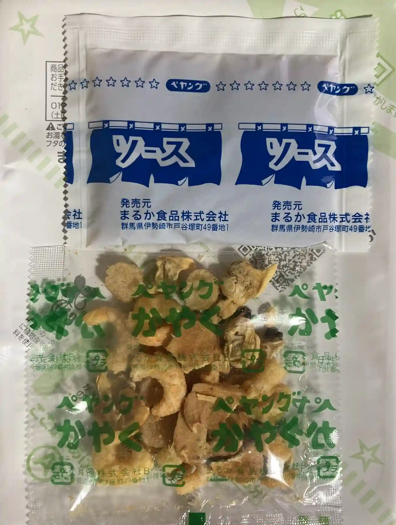 ペヤング 贅沢やきそば 海鮮ゆず胡椒の「かやく&ソース」
